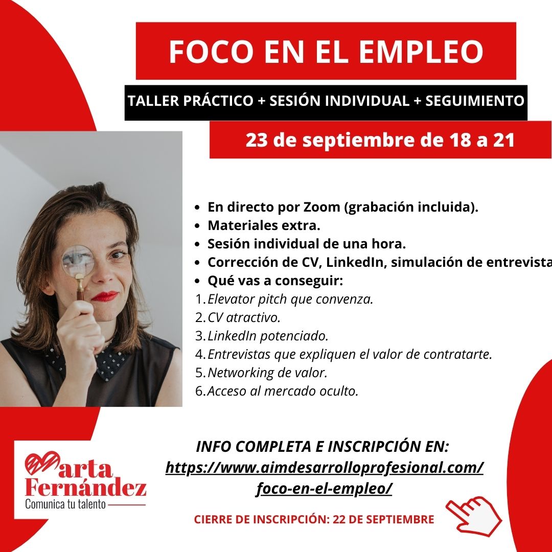 Este es el contenido exacto del taller en directo de 3 horas de FOCO EN EL EMPLEO