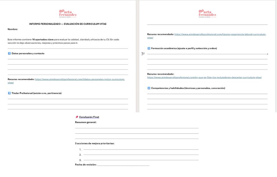 📌 BONUS DE ACCIÓN RÁPIDA 2: informe sobre el estado de tu CV de 10 apartados, hasta el 12 de marzo.
